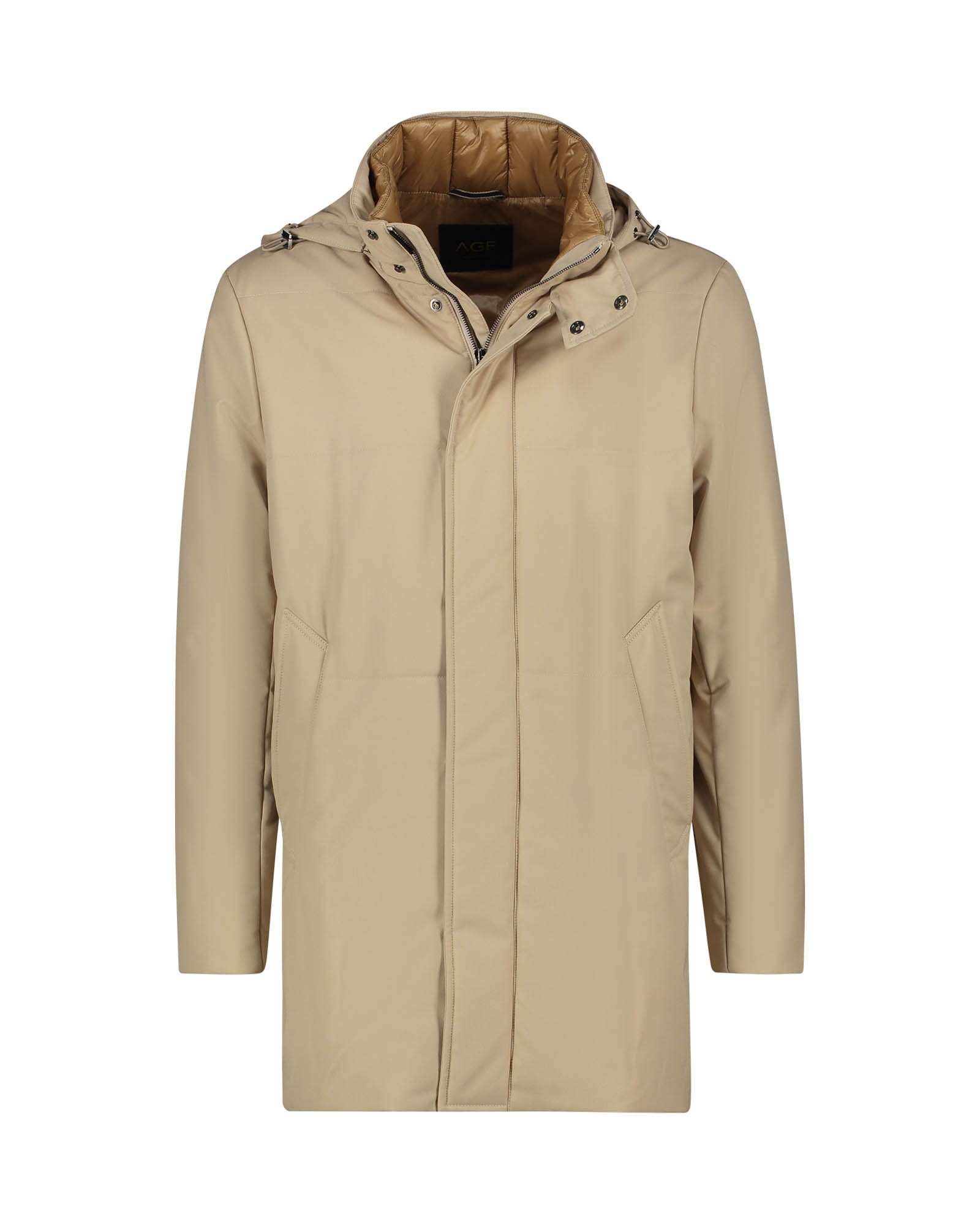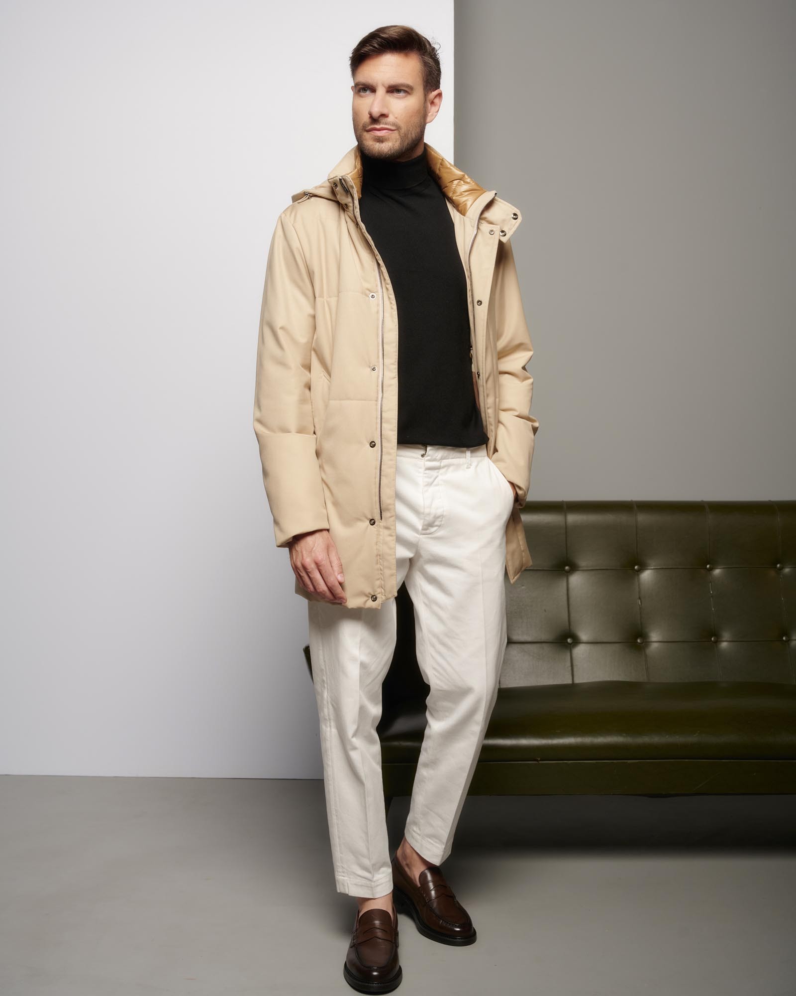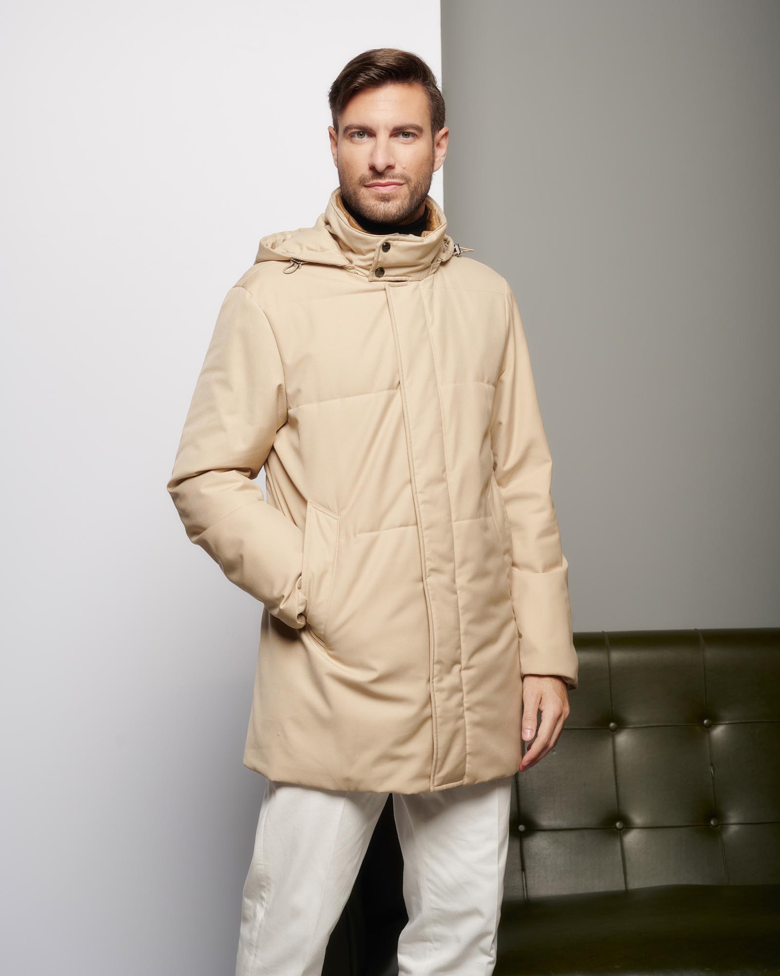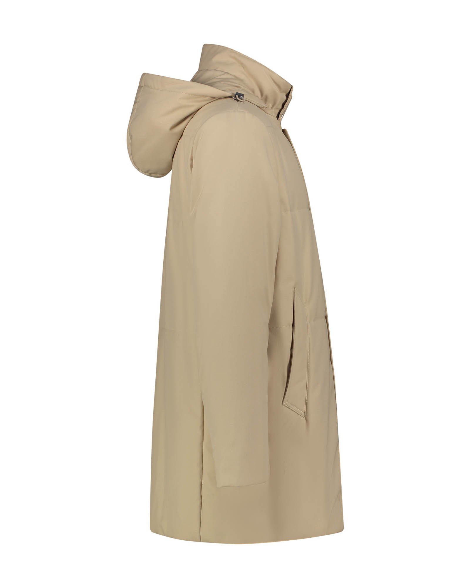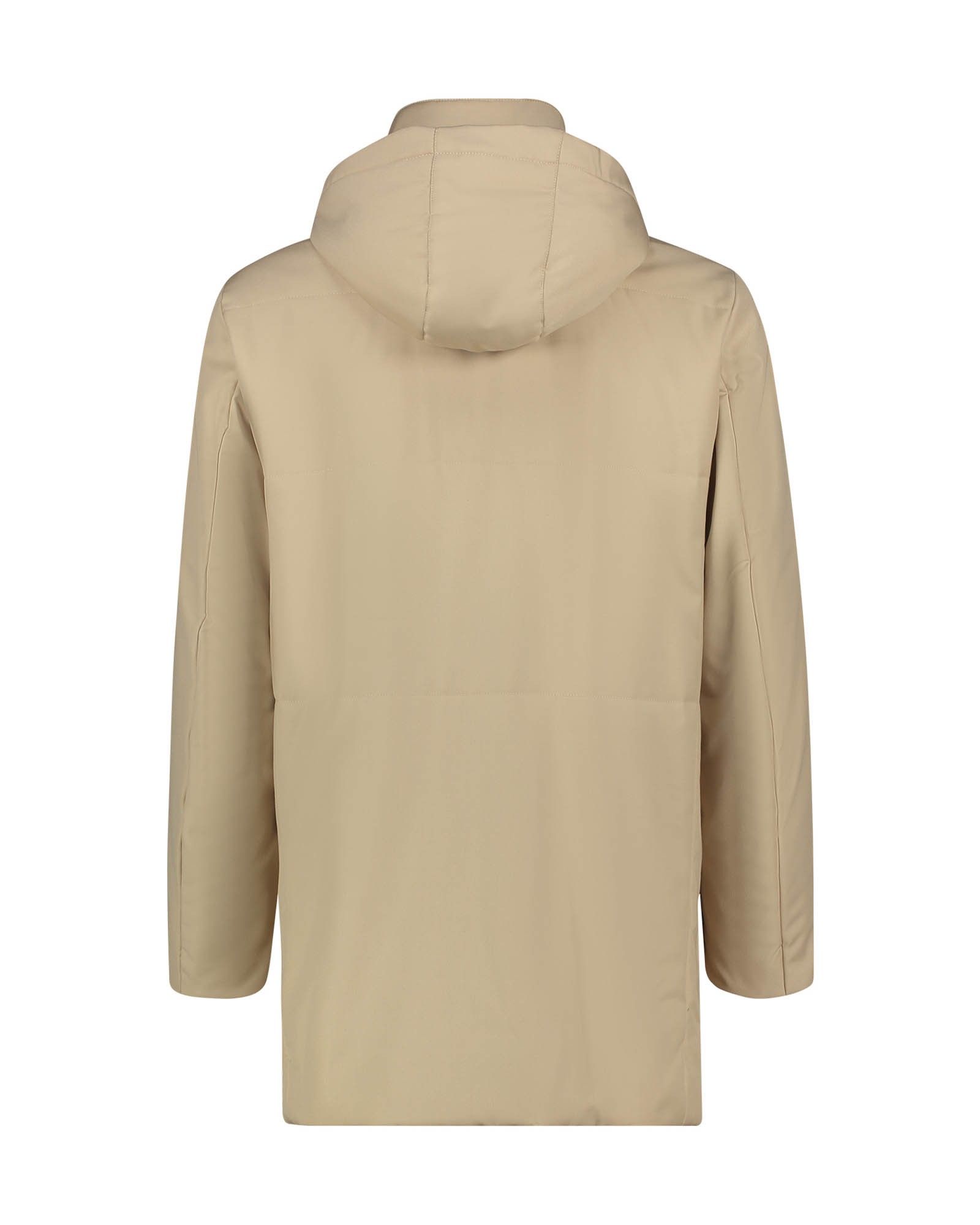 AI 25-26 194U10 194U10 Coat with fixed hood, four-hole button closure, and hand-stitched construction View