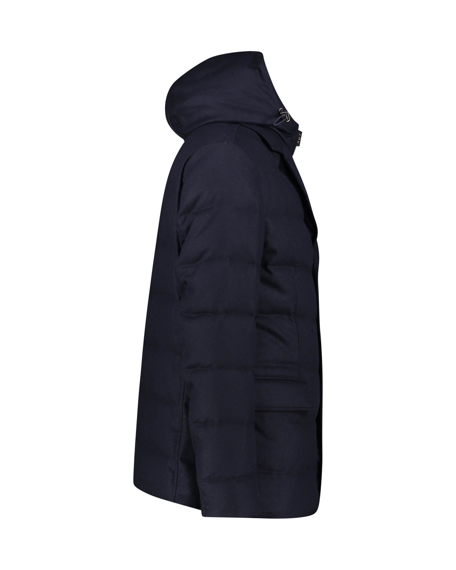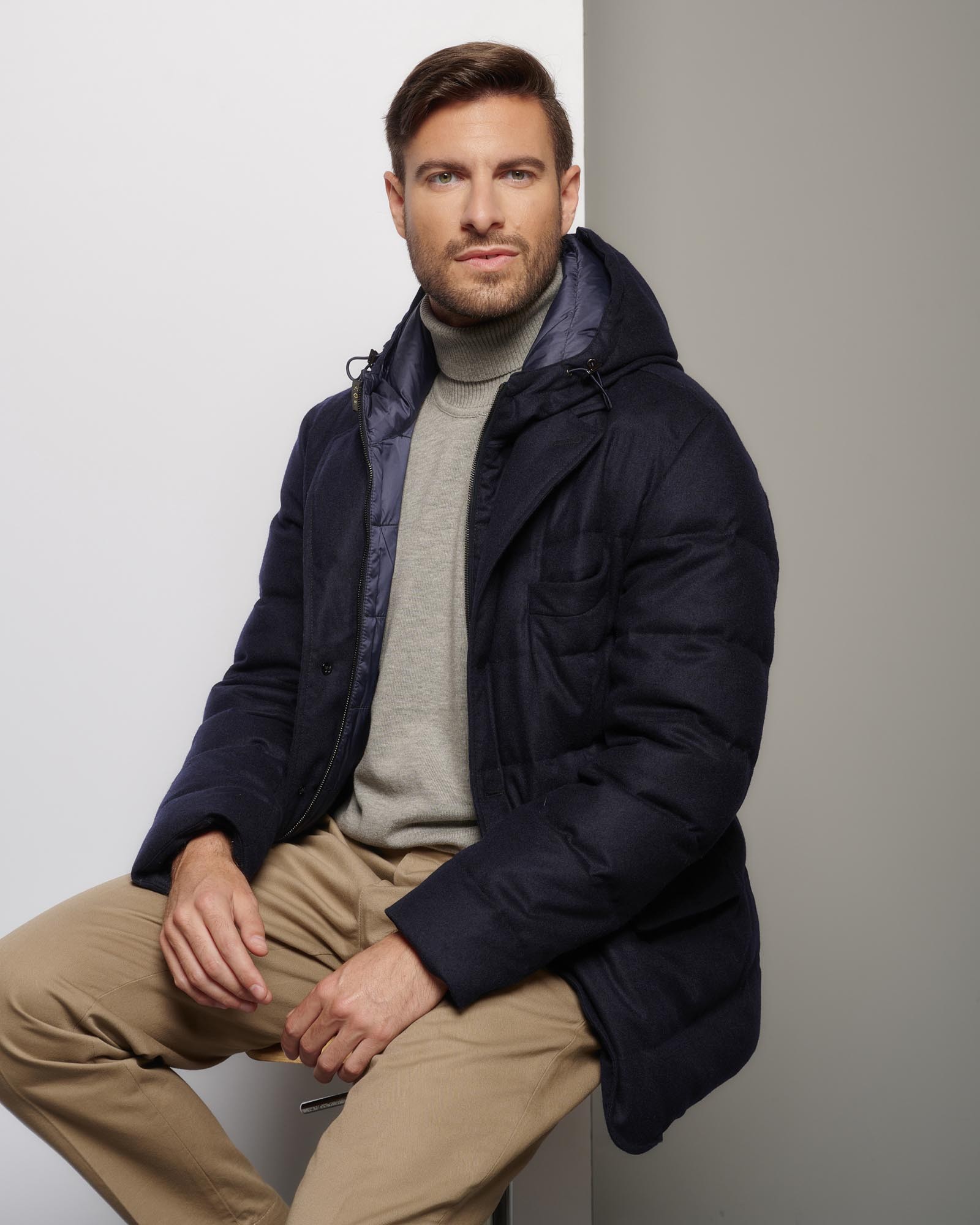 AI 25-26 194U10 194U10 Coat with fixed hood, four-hole button closure, and hand-stitched construction View